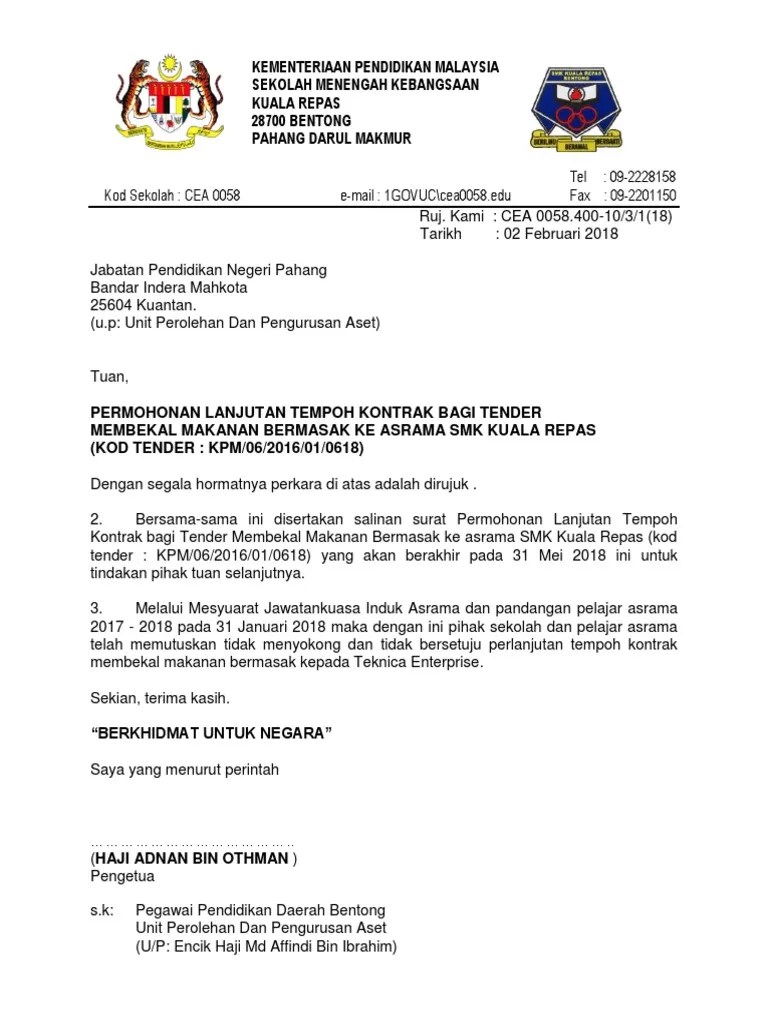 Surat rasmi permohonan lanjutan kontrak rasmi o cute766 doc surat .